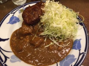 有楽町にあるカレー屋さん、マーブルに行ってきました。インドカレーに、ハンバーグをトッピング。カレーは昔懐かしい味ですが、スパイスが効いていて美味。トッピングのハンバーグも、肉の旨味がしっかり出ていて美味。付け合わせのキャベツの触感がまた良いです。ごちそうさまでした。阿部