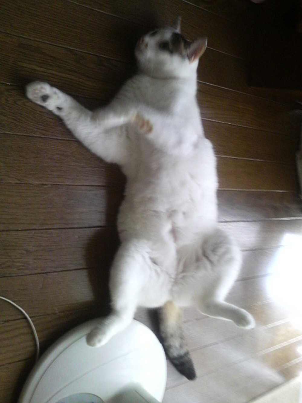 いつも食べ物の紹介が多いので、今日はちょっと変えて、うちの猫を紹介します。この猫は三匹いるうちの一匹、名前はちーちゃん。いつもやんちゃでおてんばな彼女は、気を抜くとこんな無防備な感じで床に寝っころがっています。いつも家の中を散らかしたりしますが、こんな姿を見てると全て許してあげてしまう・・・。ペットを飼っている皆さんも同じ気持ちではないでしょうか。まつ。